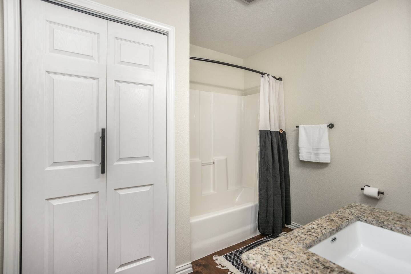 Discover the ultimate convenience with a washer dryer, fully furnished kitchen, and beautifully decorated living space. You'll find three spacious bedrooms, featuring a king bed, queen bed, and full-size bed for your comfort and relaxation.